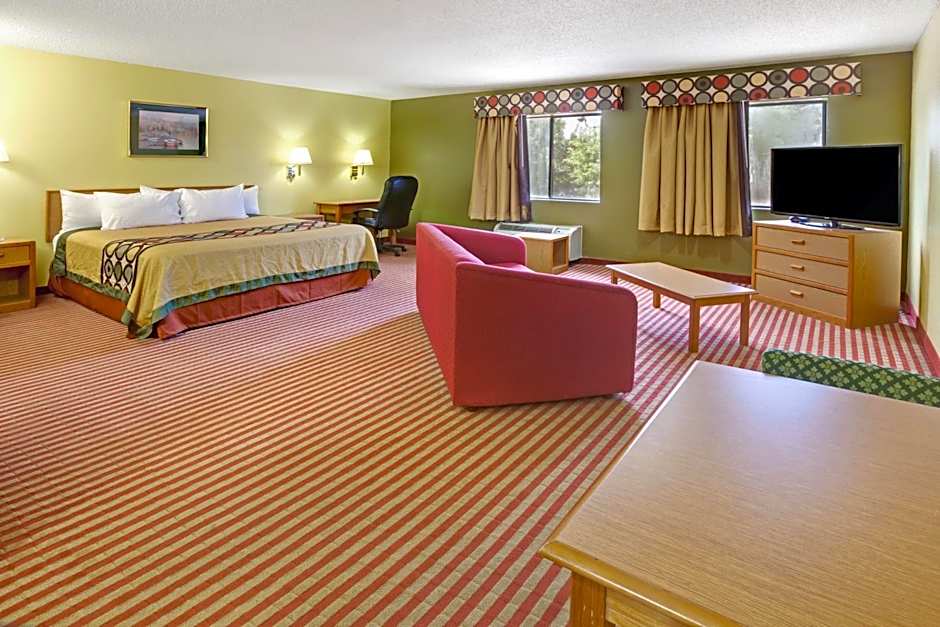A cable TV, microwave, and refrigerator are included in this room.